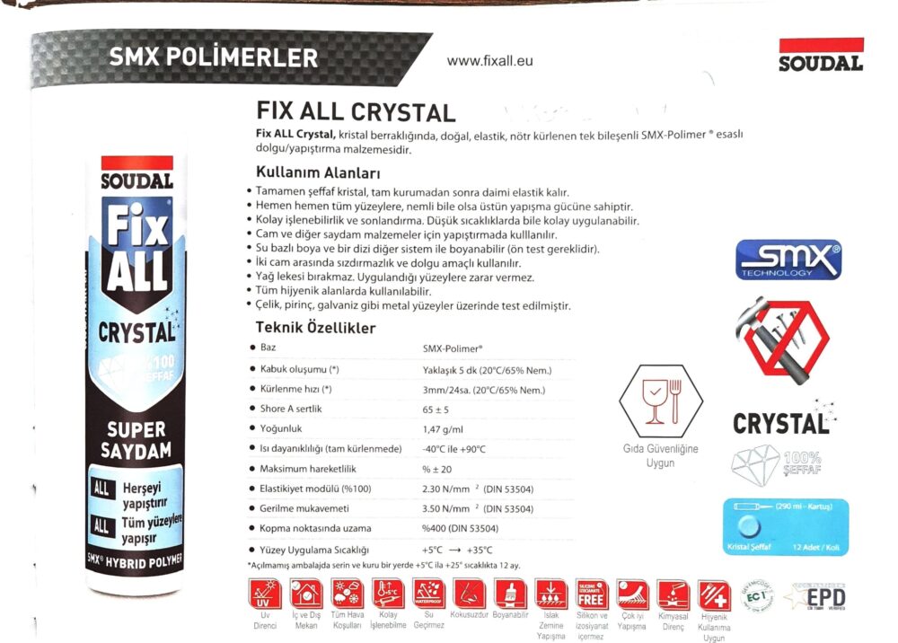 Fix ALL Crystal, kristal berraklığında, doğal, elastik, tek bileşenli MS-Polimer® esaslı dolgu/yapıştırma malzemesidir.